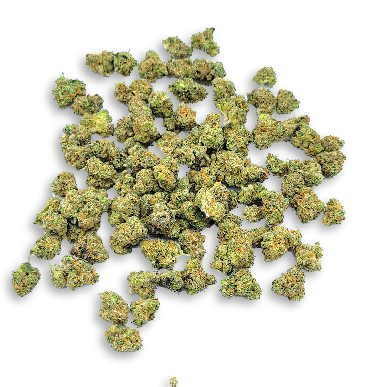 Mini nugs (or “smalls”) are smaller buds from the lower part of the plant. They have the same genetics and potency as larger buds but are offered at a lower price because of their size.
