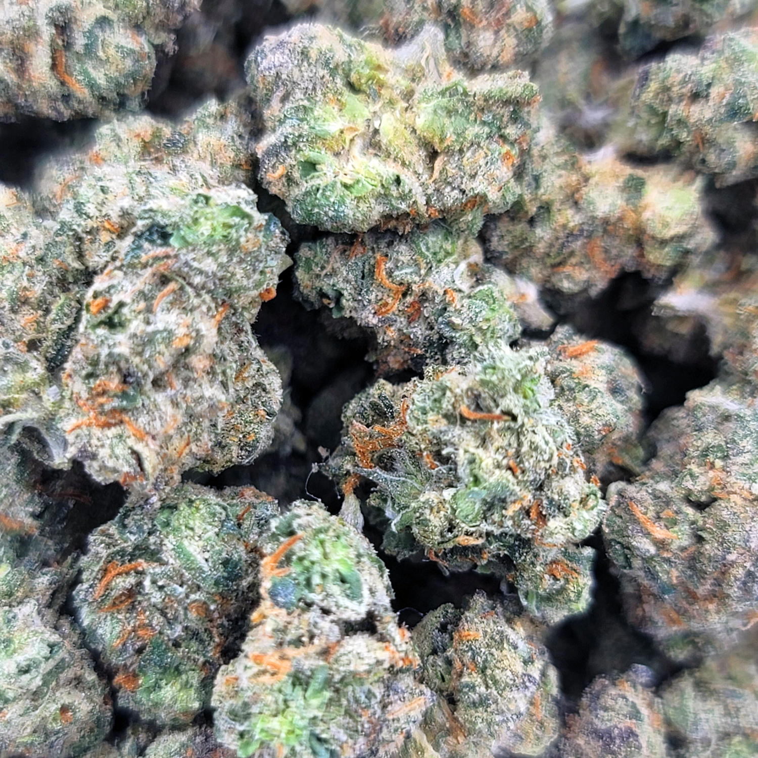 Don’t let the name fool you. Gabagool Mini Nugs are serious business. Bred by Dino Party, this strain is a cross of Italian Cookies x Black Light Bubba. Specifically, this 70/30 indica-dominant hybrid is famous for its “creeping” euphoria and heavy-duty physical relaxation (AllBud). Because this batch tests between 28% and 35% THC, it is a top-shelf choice for experienced smokers.